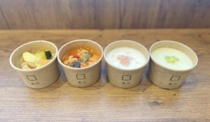 暑い日にひんやり飲める冷製スープ2種に、具材をたっぷり使用した栄養満点のスープ2種